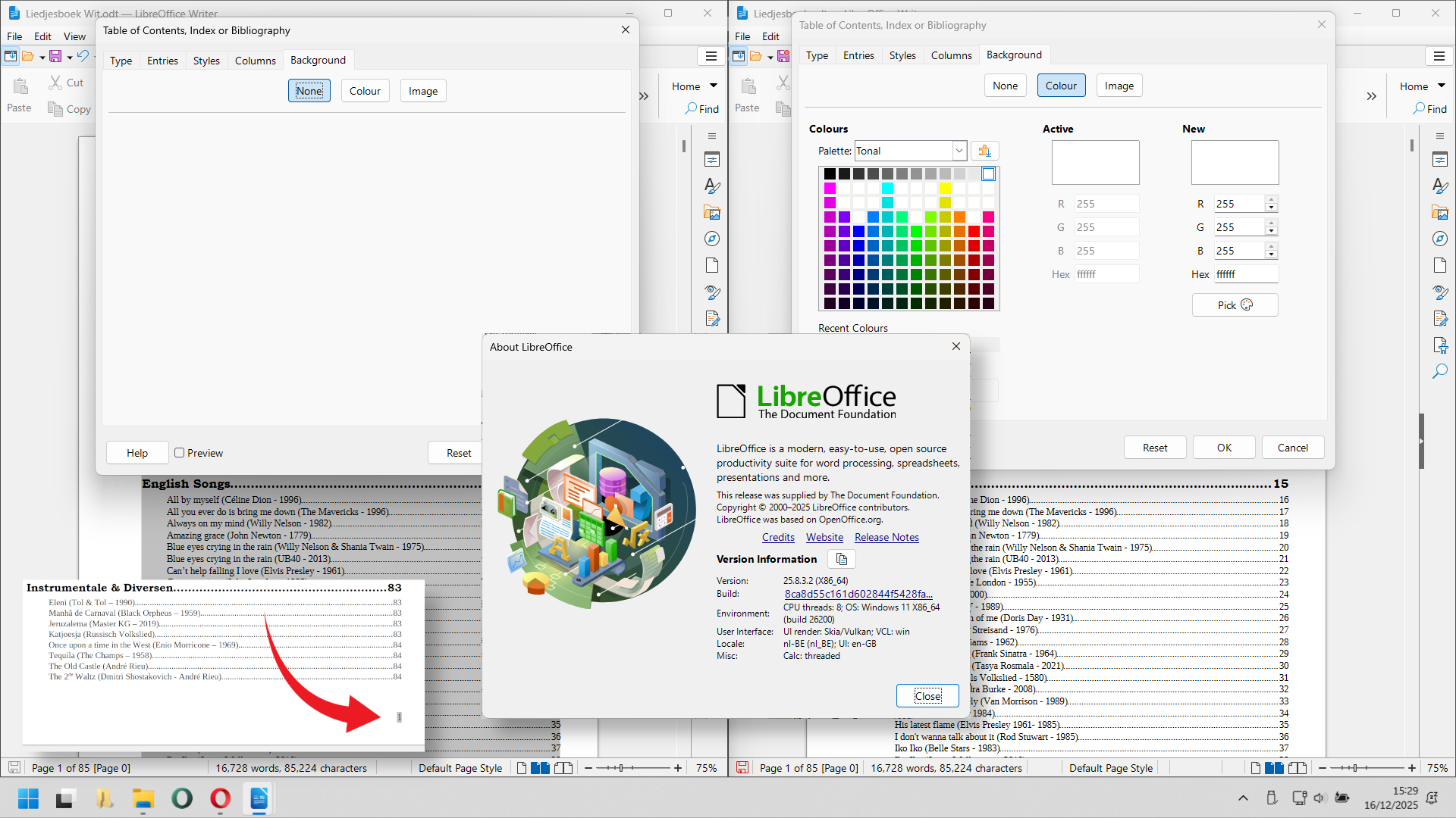 Na een update – tijdje geleden – besluit LO om de achtergrond van mijn inhoudstafel een kleurtje te geven. (Dat was voor die update niet)