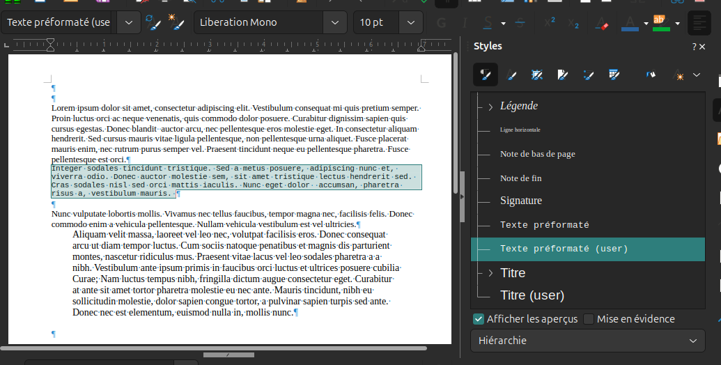 Or ce style “Bloc de citation (user)” N’EST PAS RECONNU par Wordpress (j’utilise LO/Writer pour publier sur Wordpress).