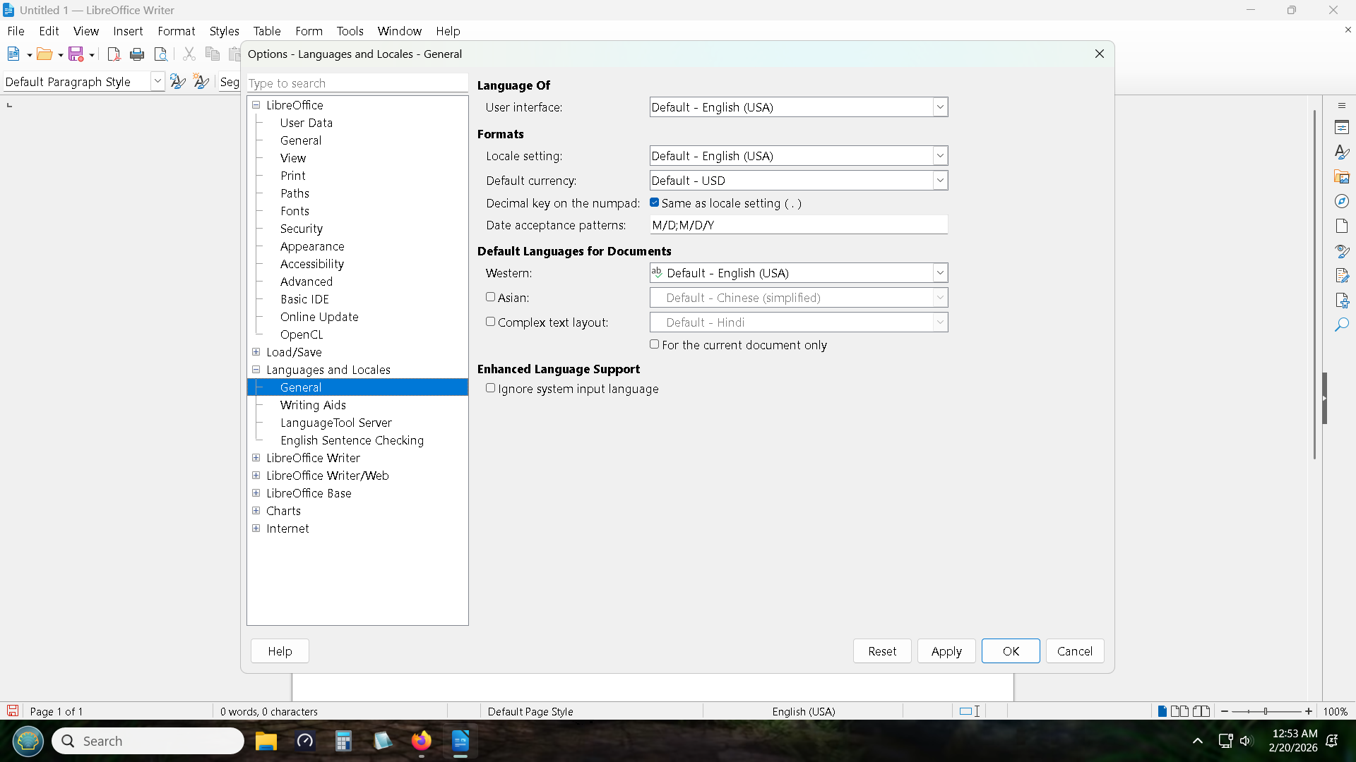 - Click Tools > Options > Languages and Locales >General and set your Locale.