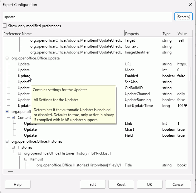 Note: this isn’t a playground, changing settings here affect LibreOffice immediately and it is possible to trash your installation with ill-considered changes