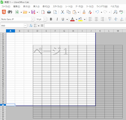 Calcで表を作成し60行を超えるとLibreOffice26.2.0では「改ページ」(PageBreak)プレビュー表示で罫線と一部のデータが本来の表示位置と異なる場所に表示される。