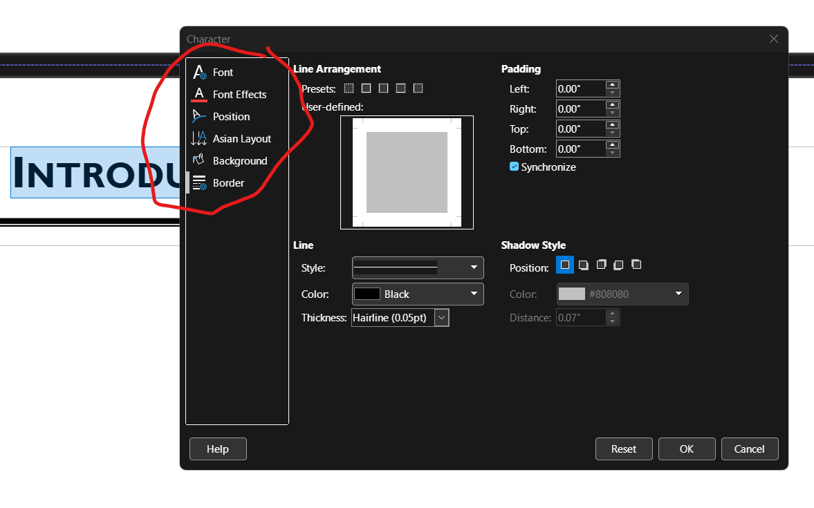 I am using Windows 11 and LibreOffice 26.2, and I’ve just today found that I can no longer select options in the formatting popups. When I highlight text and then use “Format” and then “Character,” the popup appears as normal, but is then stuck in only the border option. I cannot select any other choices.