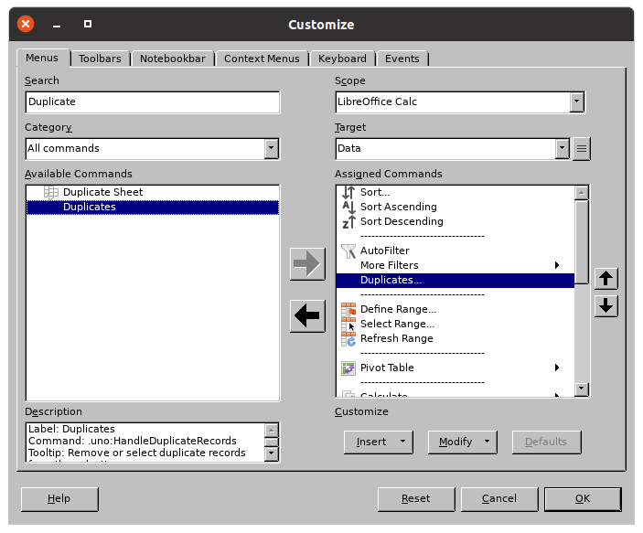 When I opened Calc today, it updated to 25.2.7. The release notes (and guide) indicate that there is a new function to remove duplicates in a set of data. It’s supposed to be accessible under Date > Duplicates. However, when I follow the directions and select a range of data, there is no “Duplicates” option under the Data menu dropdown. Does anyone else have this problem?