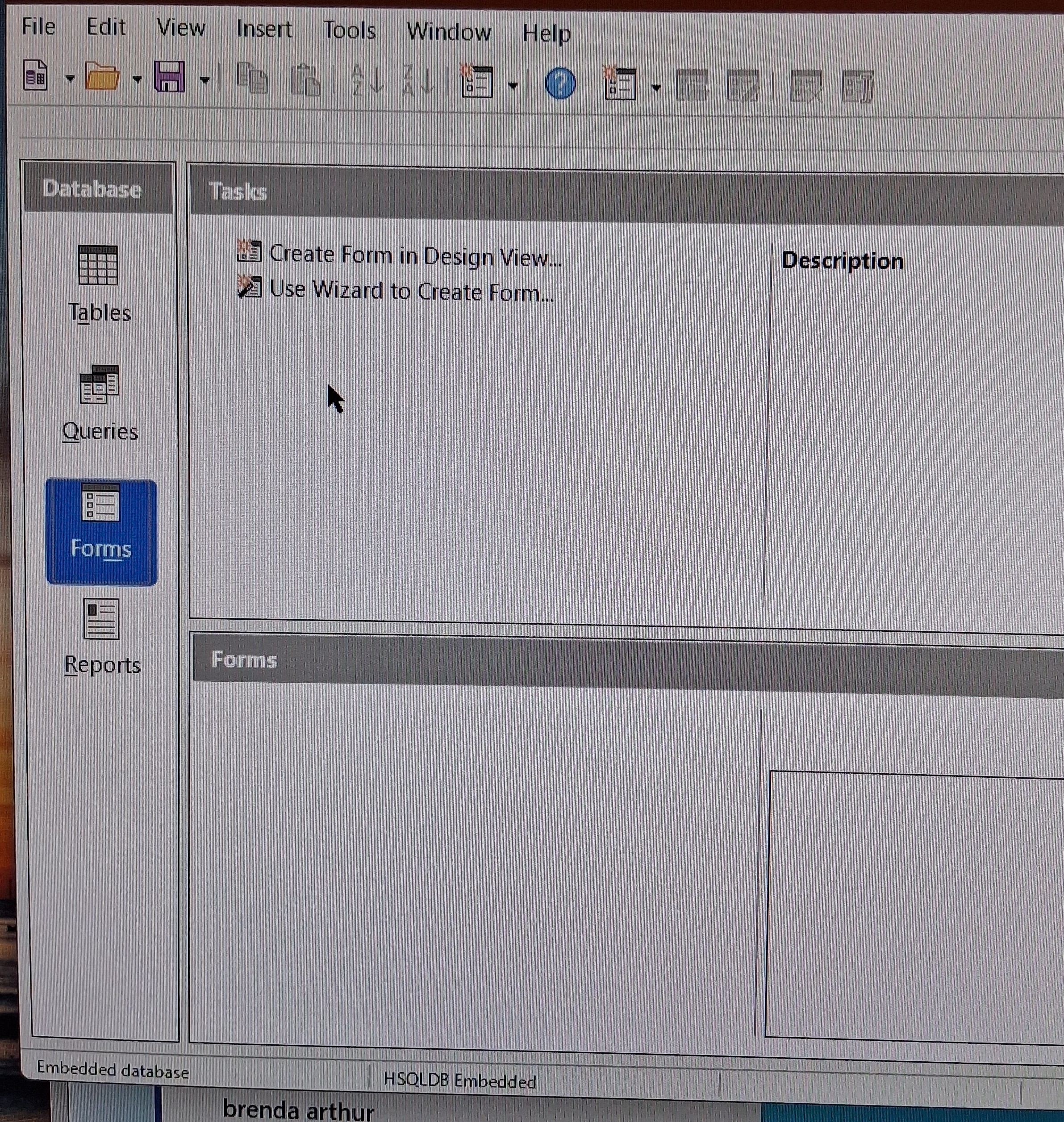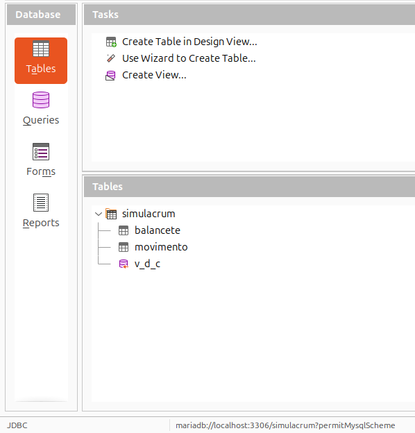 Screenshots shows an opened database file. It shows the folder for Forms. This won’t happen by default for a new Base file. A new Base file opens with tables pane.