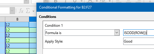 Clona formatação, segura SHIFT ou CTRL para selecionar linhas ou células alternadas para colar a formatação…deste modo não da certo, fica todas as linhas da mesma cor!