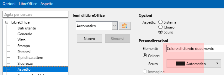 tools–> options → LibreOffice Appearance → LibreOffice Themes Automatic (that is dark)