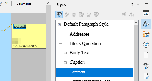 You change the style of paragraph “Comment”, and all comments (that has not got direct formatting, like the last “ccc”) will get the style options.