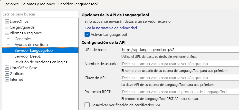 El texto que se ve en negrita en mi comentario, está copiado de la página de la extensión Language Tool en las extensiones de LibreOffice.