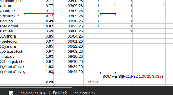 J’ai essayé plusieurs choses sans succès, vous pouvez en voir une partie en feuille 2… le reste a été effacé au fur et à mesure que j’ai constaté son non fonctionnement.