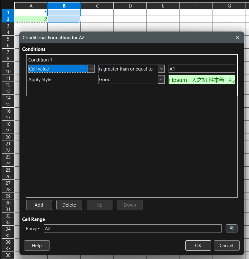 I create the conditional formatting below