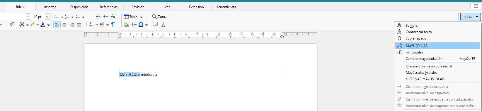 Un ejemplo, en la pestaña “Inicio”, bloque de formatos de carácter, quiero incluir el botón de poner en mayúsculas el texto y quizá eliminar otros que no uso habitualmente como “subíndice” por ejemplo.