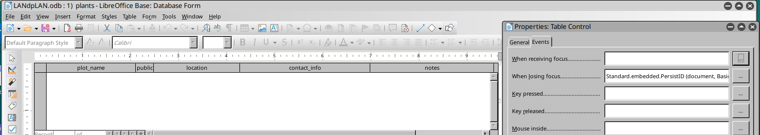 When I change records in the PlotsTbl control I want the value in the plots.plant_id column column to be copied to the first record of the only column in the table plot.plot_id.