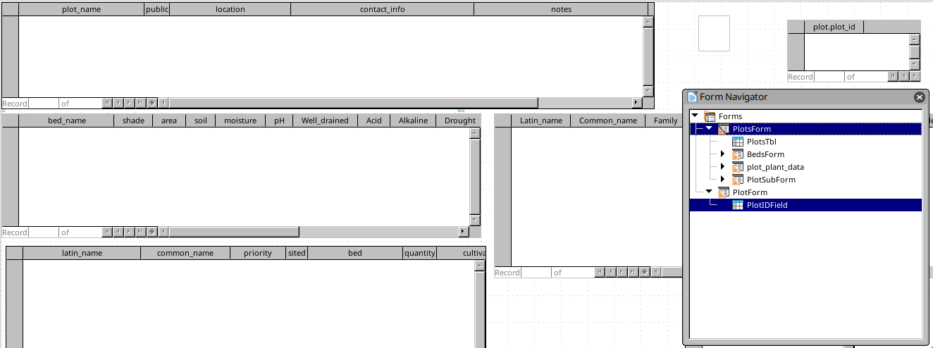 2Controls: PlotsTbl (PlotsForm) and PlotIDField (PlotForm)