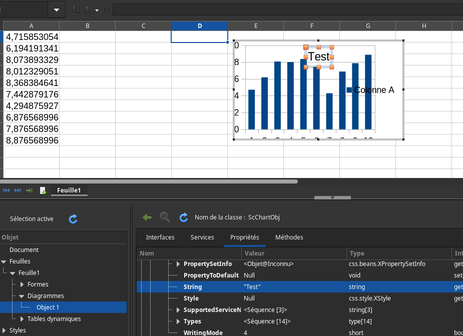 je suis enseignant en lycée général et j’essaye désespérément de créer une macro qui pourra interpréter les données d’un graphique présent dans une feuille calc. Je n’ai pas beaucoup de connaissances de programmation et les IA n’ont pas été capables de m’apporter une réponse satisfaisante.