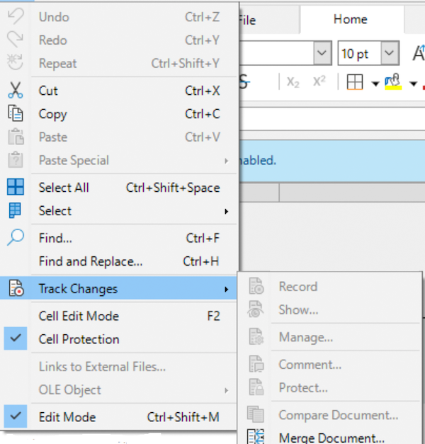 How does one disable the blue “Track Changes” bar on a shared LibreOffice document, for any user who may open that document?
