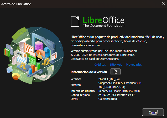 - Versión de LibreOffice: 26.2.0.3
