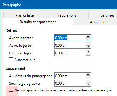 Pour certains documents, l’espace entre paragraphes est la somme des espaces au-dessous du paragraphe précédent et de l’espace au dessus du paragraphe suivant.