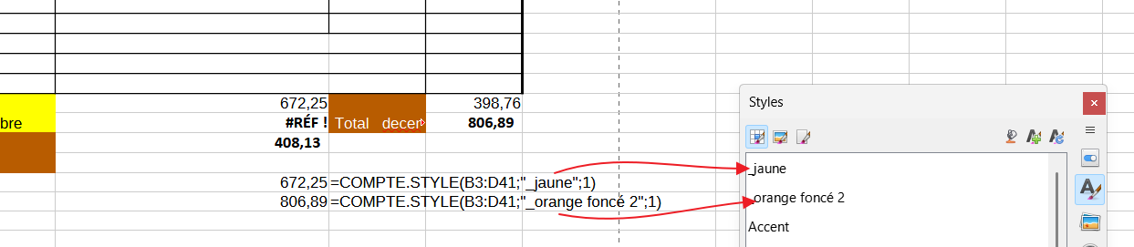 J’étais au paravant sur Windows 10 OFFICE Pro et il y a dans excell une option permettant de calculer dans un tableau, la somme des montants dont les cellules sont coloriées d’une couleur. La formule est SOMME.SI.COULEUR, je souhaiterai savoir si l’extension COMPTE.STYLE permet cela et la manière de remplir la fonction STYLE et de l’appliquer à un ensemble de cellule.