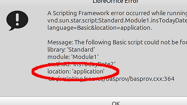 to the new PC, but at the first try to run a macro of mine on a Calc file on the new PC I got the error message attached