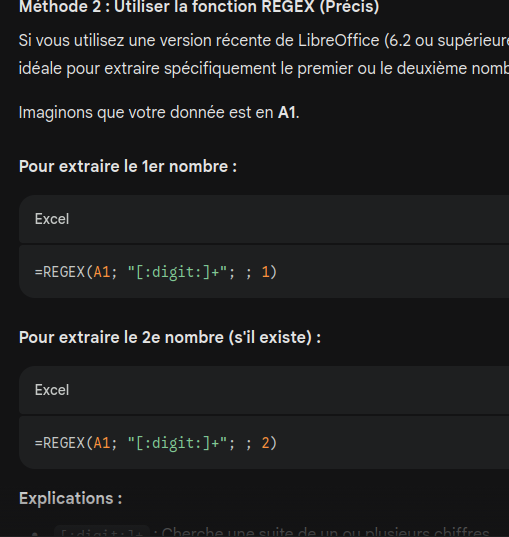 Je cherche à extraire dans des nouvelles colonnes les chiffres, donc 0, puis 5, pour le premier exemple, 50 pour le deuxième exemple.