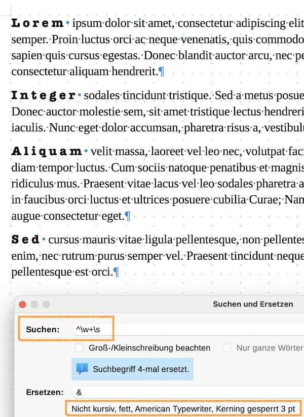 For that demonstration above, I was able to ‘bold’ that initial letter by handcrafting each occurrence.