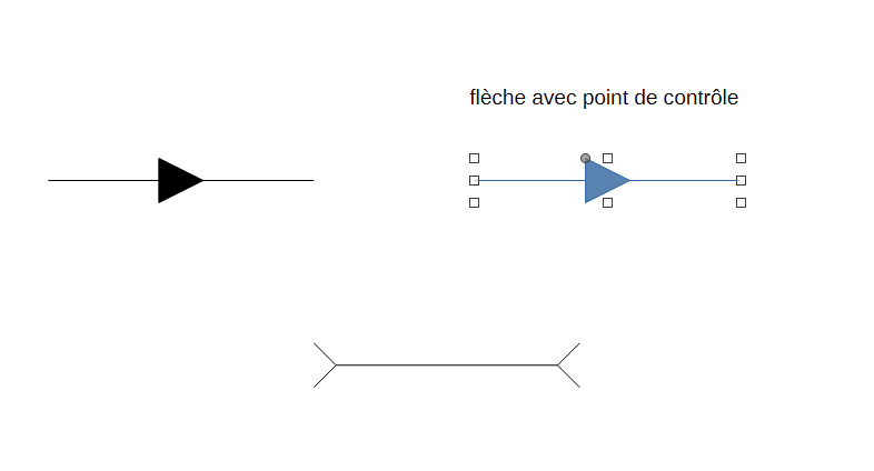 Je fais régulièrement des schémas d’optique sur libreoffice et je ne trouve pas de flèches permettant de faire des représentations de lentilles divergentes (flèche dont les deux pointes sont des flèches inversées comme ceci : >-----< ) .