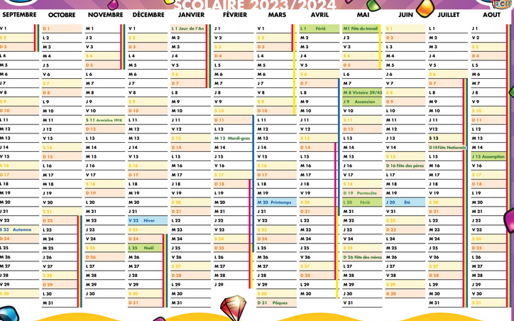 L’idée m’est venue en voyant le calendrier que j’ai reçu en cadeau d’un commercial, il a dessus les zones de congés scolaire un peu comme ça :