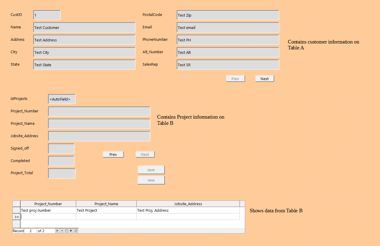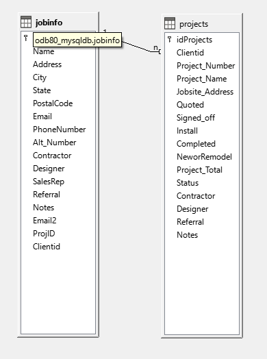 I created a 1 to many relationship between Client id on Job info and Client id on projects