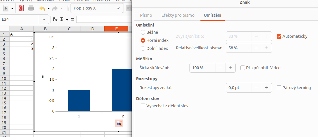 Dotaz, připomínka: Horní index popisku osy v grafu LO Calc.