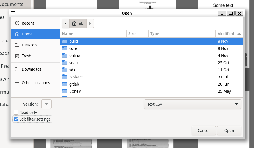 “When the checkbox is unchecked, and the dialog is normally not shown, it is possible to show it (once), using a new Edit filter settings checkbox in the File Open dialog”