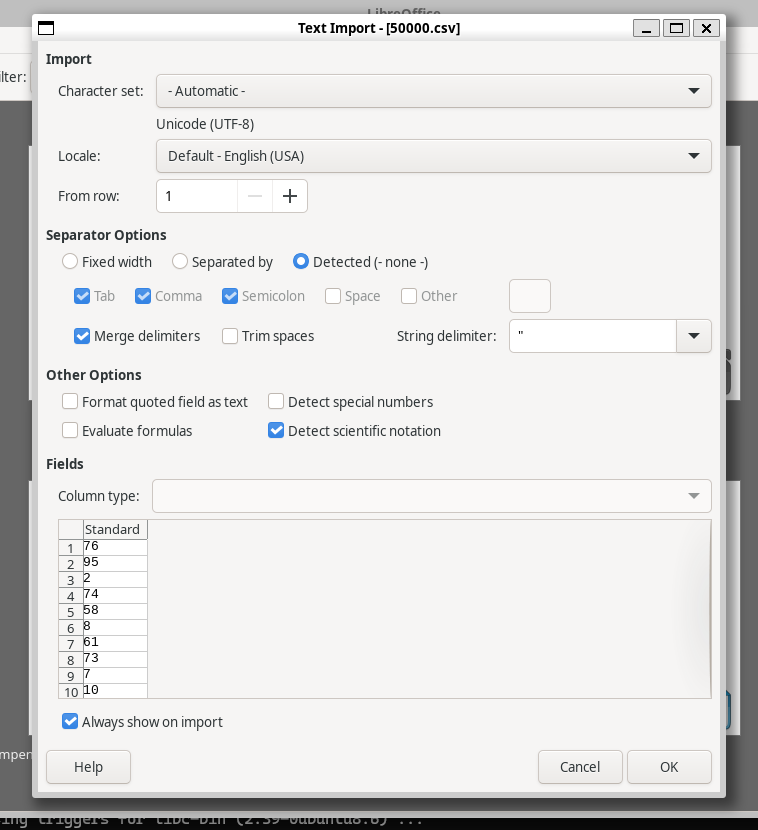 I try to open a txt file, and i have lost the dialog import where i can decide delimiters.