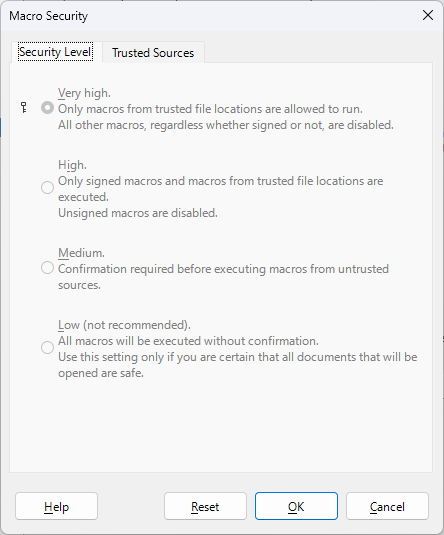 and will set macro security level to Medium