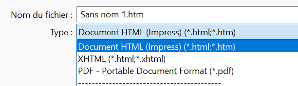 Dans le menu fichier > exporter … Quand je change la proposition de PDF le premier choix est html. Mais, le résultat est une page unique sans image :