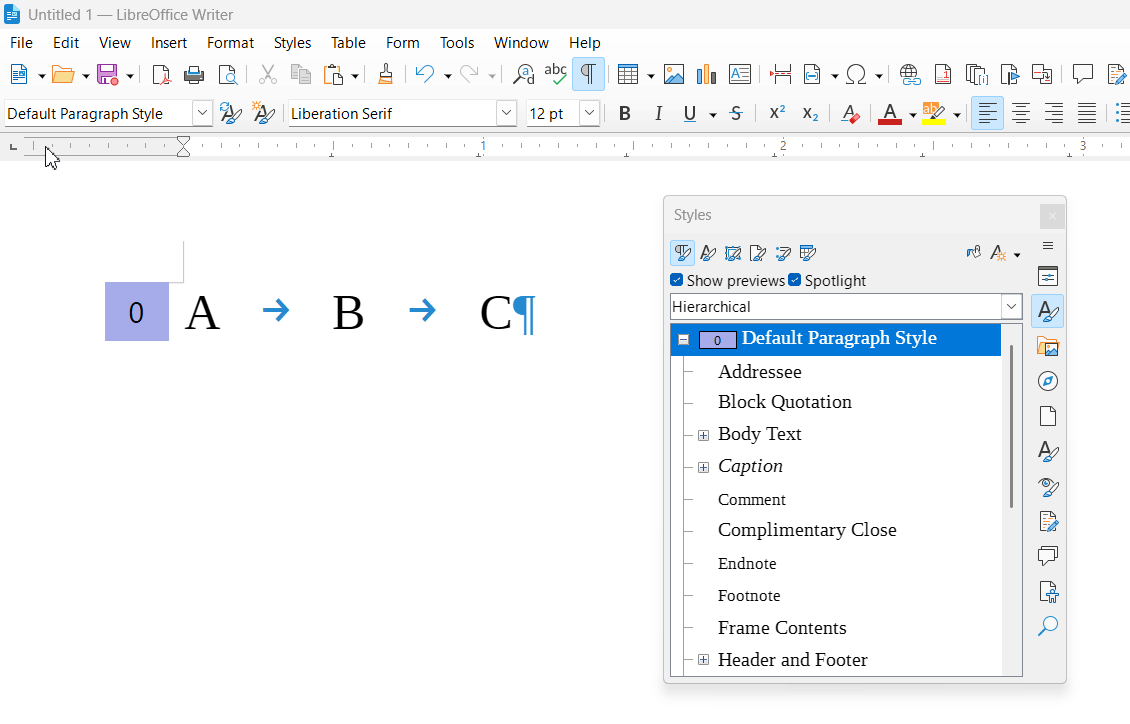 (or on the ruler for direct formatting – to be avoided in “maintained” documents)