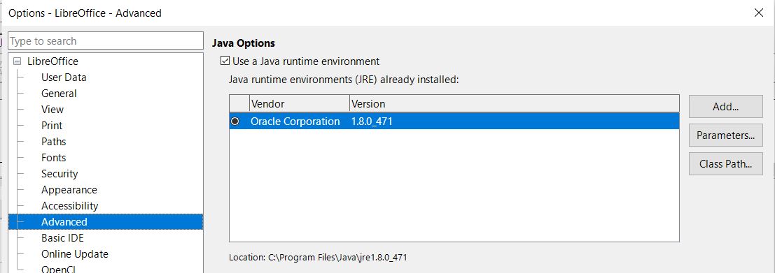 Hello, I’m using LO v25.8.3.2 X86_64 on Windows 10. I installed JRE and it is selected under Java Options in LO. However, I still receive an error message when trying to generate mailing labels by connecting to an Address Labels-named spreadsheet saved in LO format. Please advise. I’ve attached screenshots. Thank you.