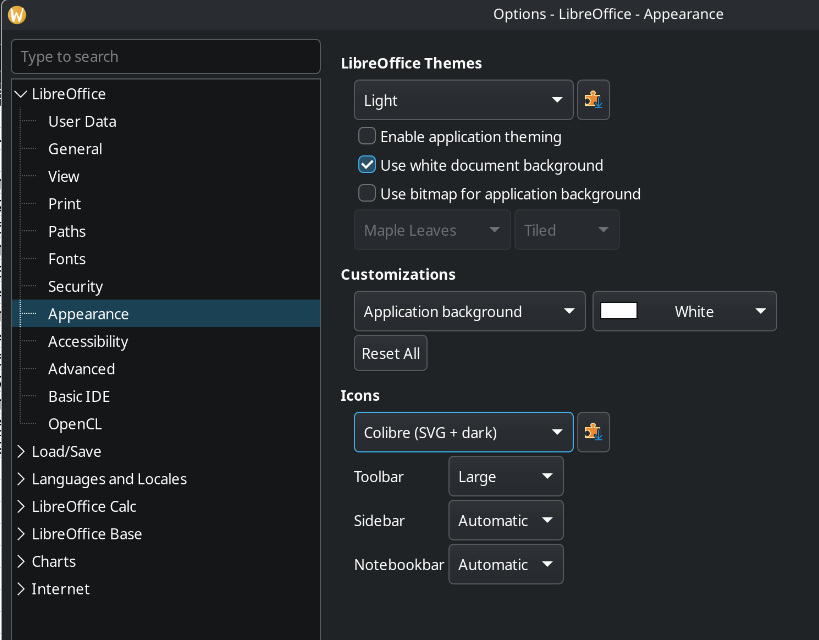 I read this thread Change LibreOffice theme from dark to light - #2 by Armin which I tried both installation source still the same.