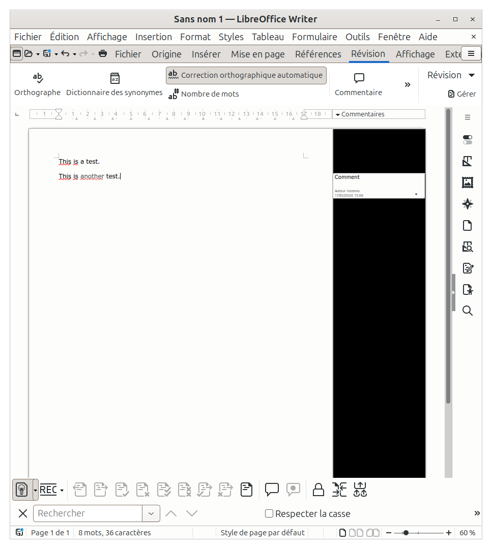On writer, when I display/add comment on a specific computer, no arrow/highlight for comments is displayed.