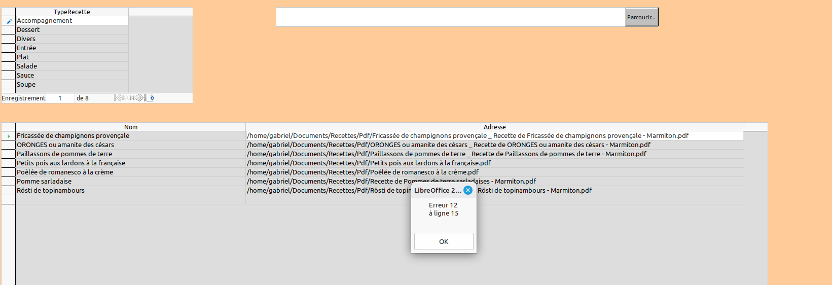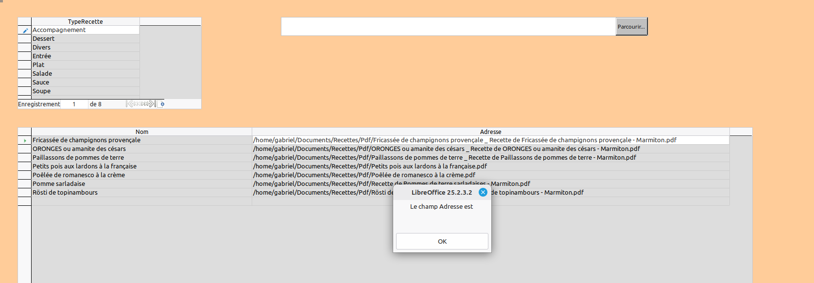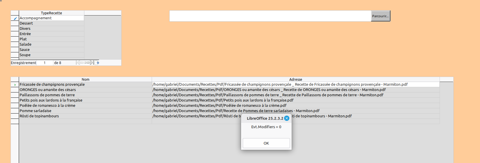 MsgBox "Formulaire ""SubForm_Recettes"" introuvable.", 48, "Erreur"