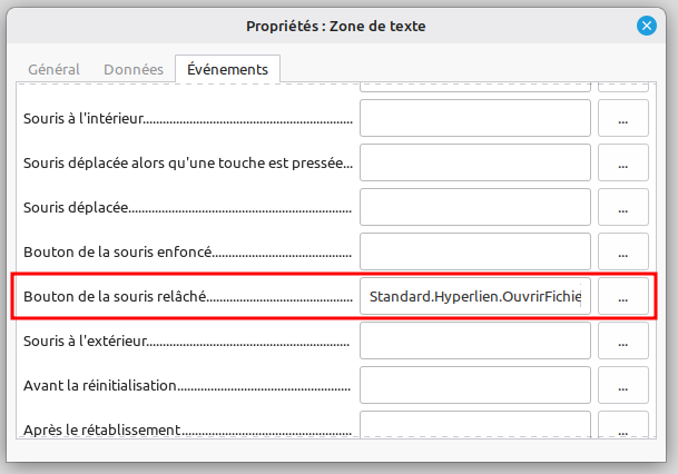 J’ai affecté la macro à l’événement Bouton de la souris relâché :