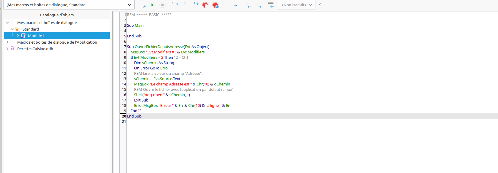 MsgBox "Fichier non trouvé : " & sChemin, 48, "Erreur"