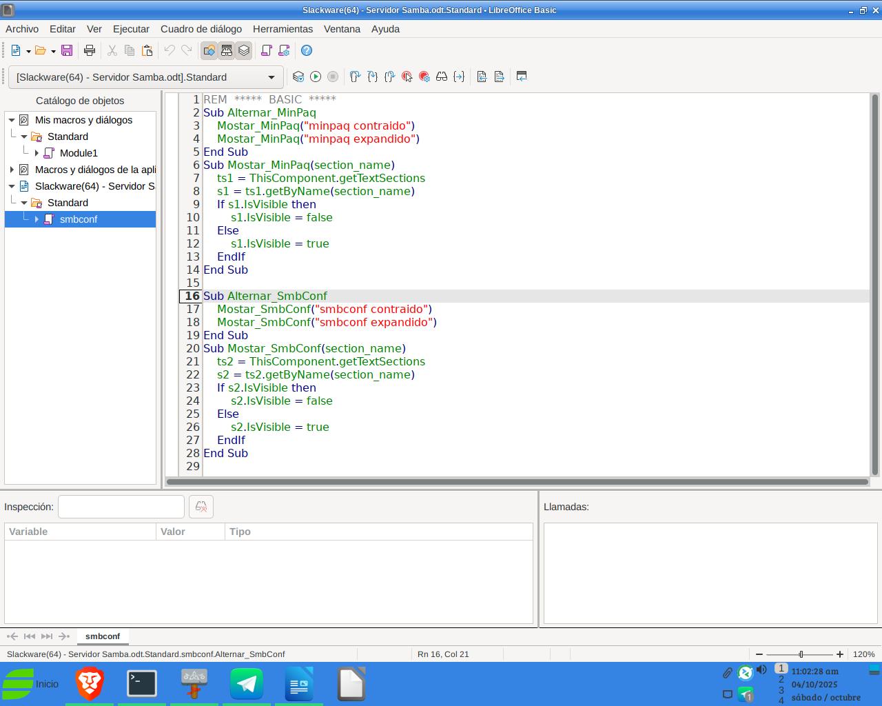 Para quienes puedan ayudarme con las macros, ya que quiero hacer eso de Ocultar/Mostrar texto, en varias secciones posteriores que voy a ir escribiendo, pero necesito que el libreoffice no vaya a crashear cuando las utilice ademas si es posible hacerlo en todos los lenguages de programacion compatibles podre comparar como se debe adaptar en cada caso y cual me resulta mejor para este.