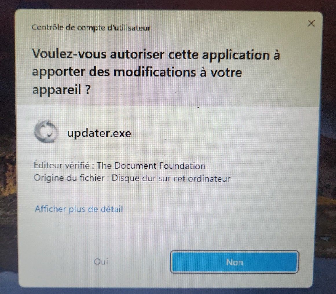Depuis quelques jours voire semaines, chaque ouverture de libre office, que ce soit writter, calc… et sur un feuille vierge ou déjà enregistrée, provoque l’ouverture d’une fenêtre pour valider une mise à jour.
