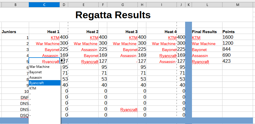 I need help. I am doing a spreadsheet for a race regatta. I have all the entrants on a separate sheet and have linked this back to appropriate cells with the data validity function.
