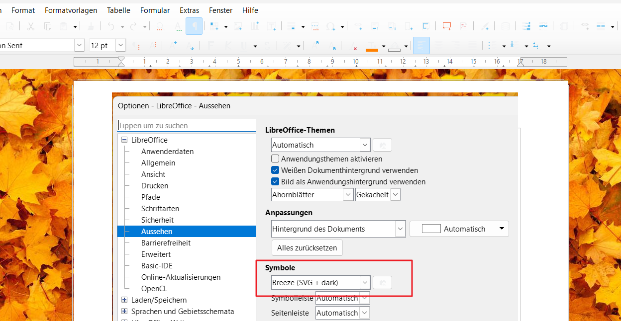 - éventuellement le thème LibreOffice et le jeu d’icônes activés