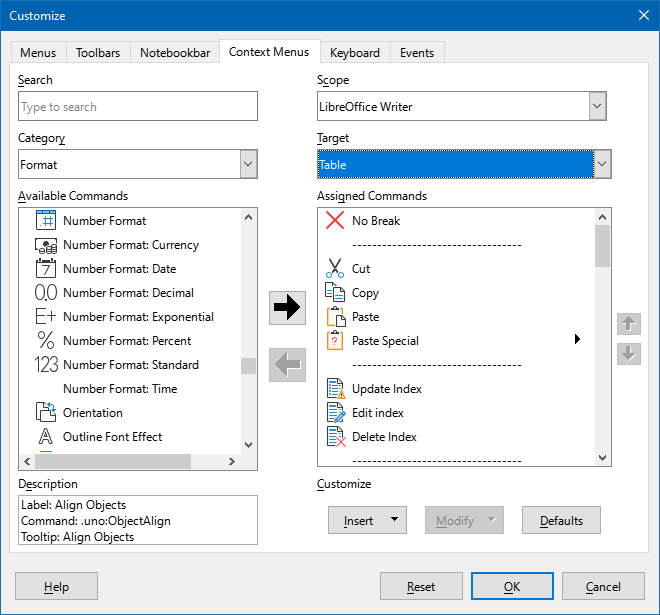 Yes I have been using table / number format in the toolbar but if that was in the right click menu it would save so much time as every time a save the document as I add I have to reformat currency and somtimes date right click is so simple it was so much better using open office with this option if I didn’t have to change for the docx I wouldn’t have as I had been using star office then open office for so long. Using Libre 25-2 latest version. Win 64bit.
