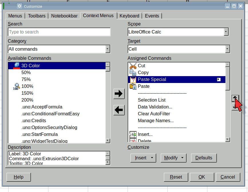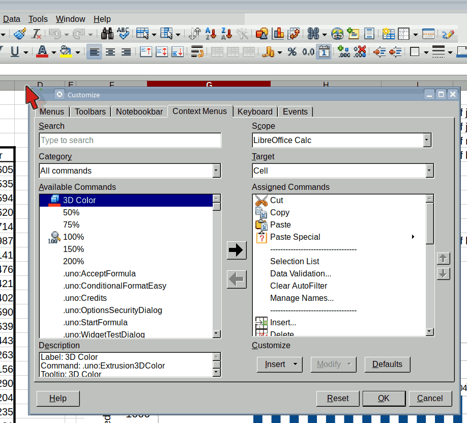 I have several hundreds files made with AOO and none of the one I’ve tried works. I can see the modification made in the “Option” “Context Menus” but not when I right-click the cell.