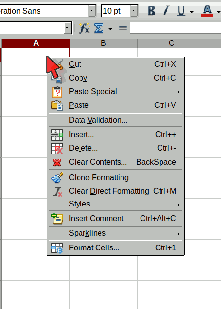However, I just created a simple spreadsheet with AOO and opened it in LO; I was able to modify the context menu in that spreadsheet. Saving and re-opening the file in AOO loses the changes to the context menu; not surprisingly as it is a global change, not restricted to one spreadsheet.