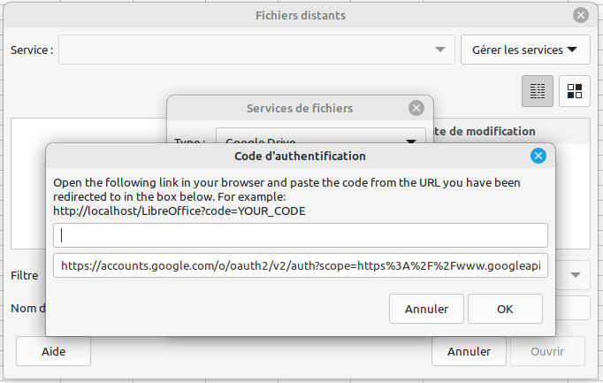 Je n’ai pas reussi à paramétrer un nouveau service Google Drive pour utiliser la commande “Ouvrir Distant”.