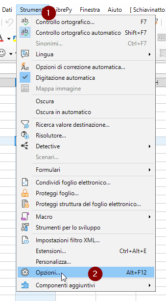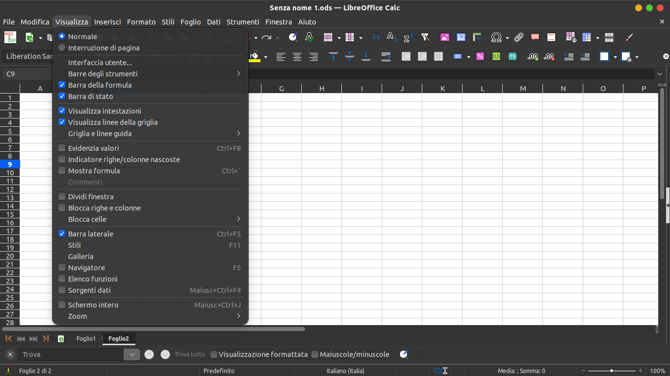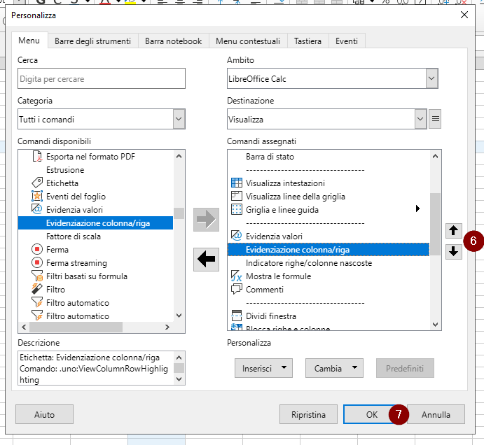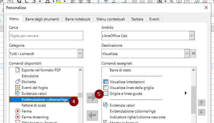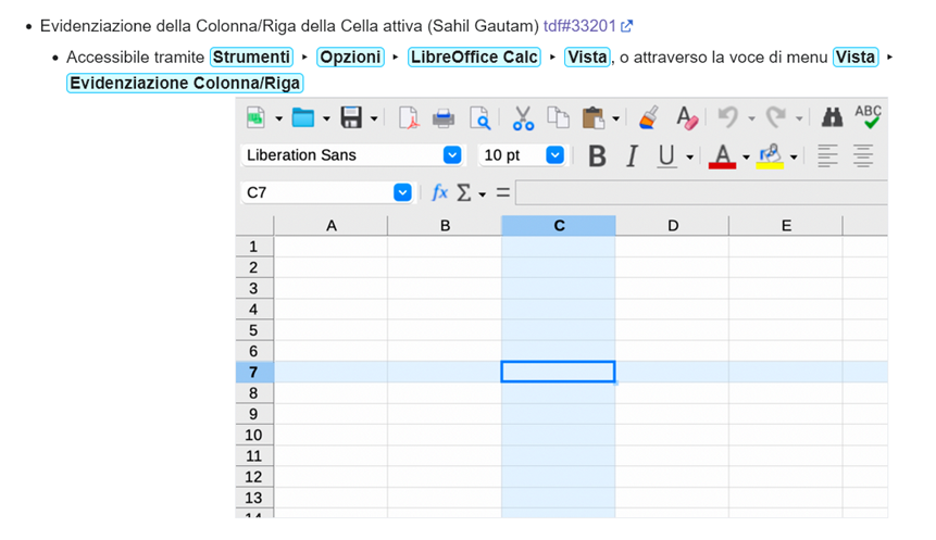L’evidenziazione della colonna/riga della cella attiva è disponibile a partire dalla versione 24.2 di LibreOffice (Note di rilascio).