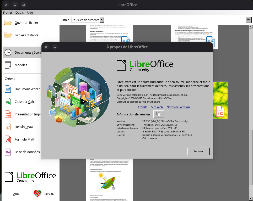 Je me sers de LO (sous Debian 13, aujourd’hui - Linux 6.12.63+deb13-amd64).